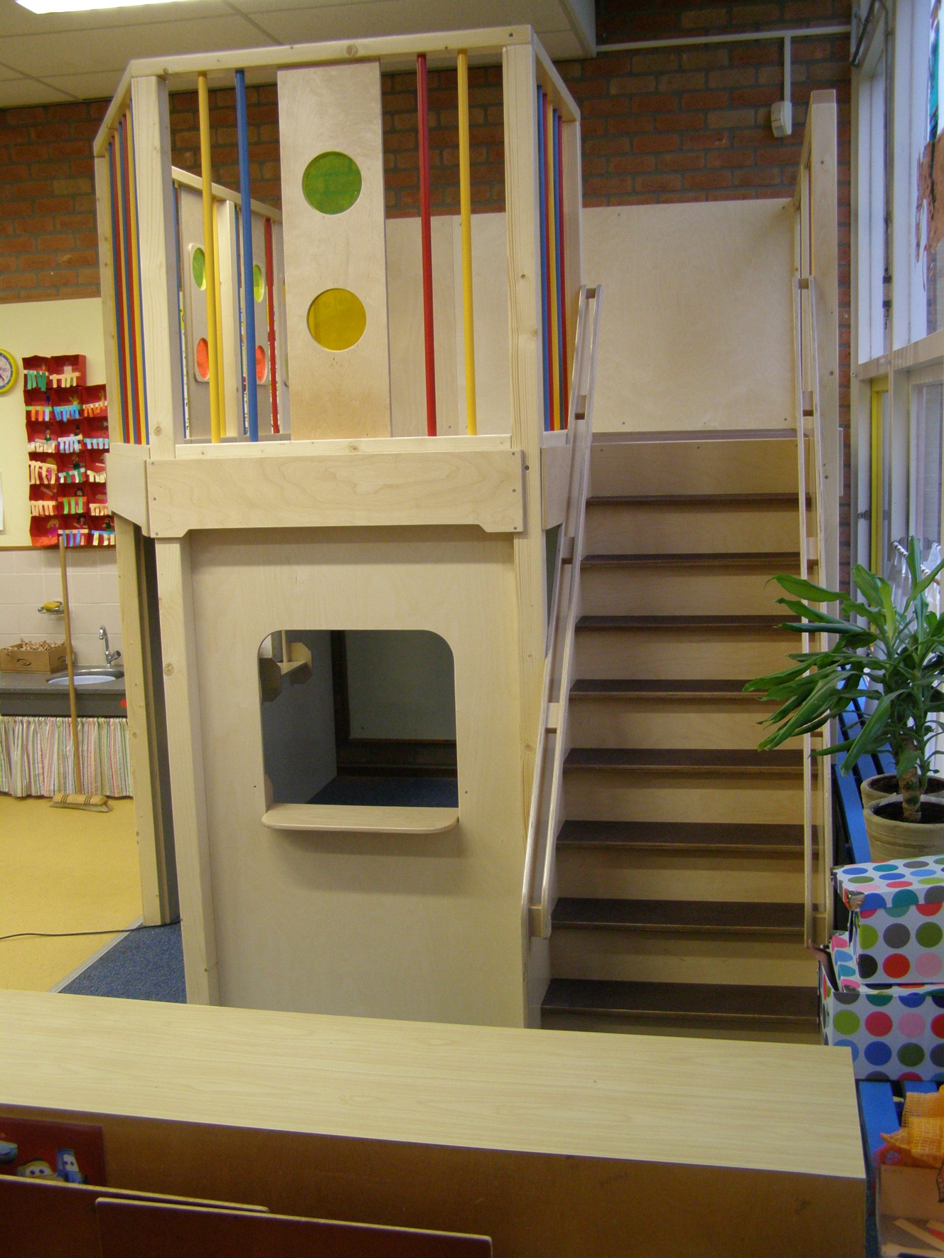 Waarom past de Castilo speelwerkverdieping in uw kinderopvang of school? Wanneer uw ruimte-indeling vraagt om een vrije voor- of middenzijde, biedt trap rechtsachter dezelfde voordelen als linksachter — maar gespiegeld. Handig wanneer de rechter achterwand van uw ruimte de meest logische plek voor een trapopening is. Volledig op maat in breedte en kleur.