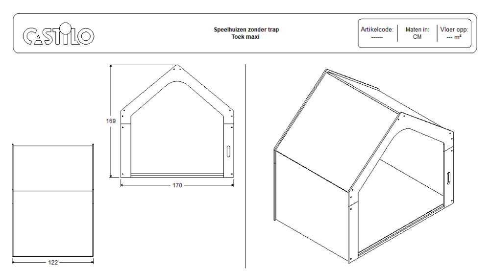 - Toek Maxi (170 x 122 x 170 cm): Ruim formaat voor groepsspel met 3-4 kinderen tegelijk. Extra keuzemogelijkheid in gevelvormen. Perfect voor grotere ruimtes waar sociaal spel centraal staat.