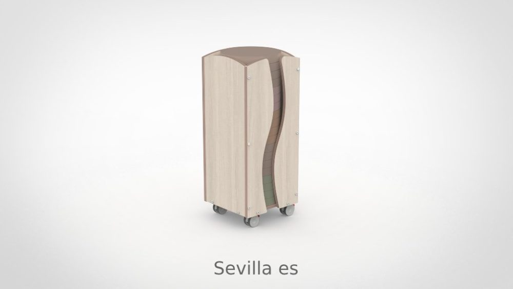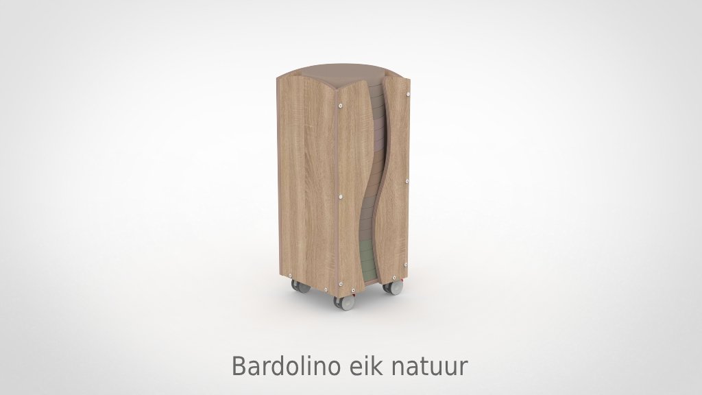 De trolley is vervaardigd uit hoogwaardig multiplex met een slijtvaste HPL-afwerking, leverbaar in 9 houtdecors. De kussentjes (30 x 30 x 4 cm) zijn bekleed met slijtvast kunstleer dat eenvoudig met een vochtige doek schoon te houden is — praktisch bij dagelijks intensief gebruik.
