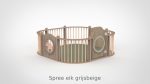 In de grondbox kunnen oudere baby’s — te groot voor de gewone box maar nog niet klaar om vrij op de groep te spelen — zich in alle vrijheid bewegen en ontdekken. Vanuit liggen rollen ze om, gaan tijgeren en leren kruipen. Dit zelfstandig bewegen heeft een positieve invloed op het zelfvertrouwen en zelfbeeld van het kind. Tegelijk creëert de grondbox rust op de groep: baby’s worden niet meer gehinderd door grotere kinderen en andersom. Het ergonomische deurtje opent door het op te tillen en zo uit de vergrendeling te halen — u hoeft niet te bukken om het deurtje te openen of te vergrendelen. De lage drempel zorgt ervoor dat u kinderen eenvoudig in en uit de box kunt tillen.