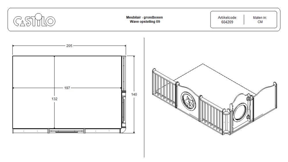 De Wave grondbox van Castilo is al 25 jaar het icoon in de professionele kinderopvang. De kenmerkende golvende bovenkant, de solide constructie en de uitgebreide personalisatiemogelijkheden maken deze grondbox tot de eerste keuze voor kinderdagverblijven door heel Nederland. De opstellingen zijn voorbeeldconfiguraties — u kunt de grondbox ook volledig naar eigen wens samenstellen uit losse panelen.