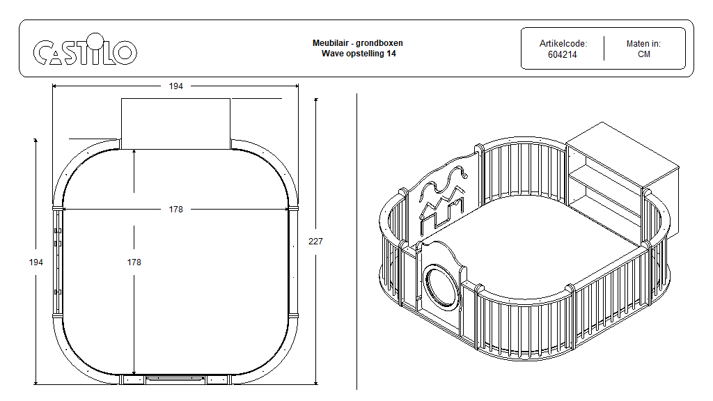 De Wave grondbox van Castilo is al 25 jaar het icoon in de professionele kinderopvang. De kenmerkende golvende bovenkant, de solide constructie en de uitgebreide personalisatiemogelijkheden maken deze grondbox tot de eerste keuze voor kinderdagverblijven door heel Nederland. De opstellingen zijn voorbeeldconfiguraties — u kunt de grondbox ook volledig naar eigen wens samenstellen uit losse panelen.