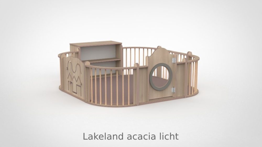 In de grondbox kunnen oudere baby’s — te groot voor de gewone box maar nog niet klaar om vrij op de groep te spelen — zich in alle vrijheid bewegen en ontdekken. Vanuit liggen rollen ze om, gaan tijgeren en leren kruipen. Dit zelfstandig bewegen heeft een positieve invloed op het zelfvertrouwen en zelfbeeld van het kind. Tegelijk creëert de grondbox rust op de groep: baby’s worden niet meer gehinderd door grotere kinderen en andersom. Het ergonomische deurtje opent door het op te tillen en zo uit de vergrendeling te halen — u hoeft niet te bukken om het deurtje te openen of te vergrendelen. De lage drempel zorgt ervoor dat u kinderen eenvoudig in en uit de box kunt tillen.