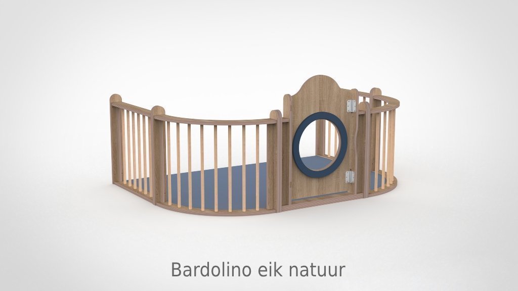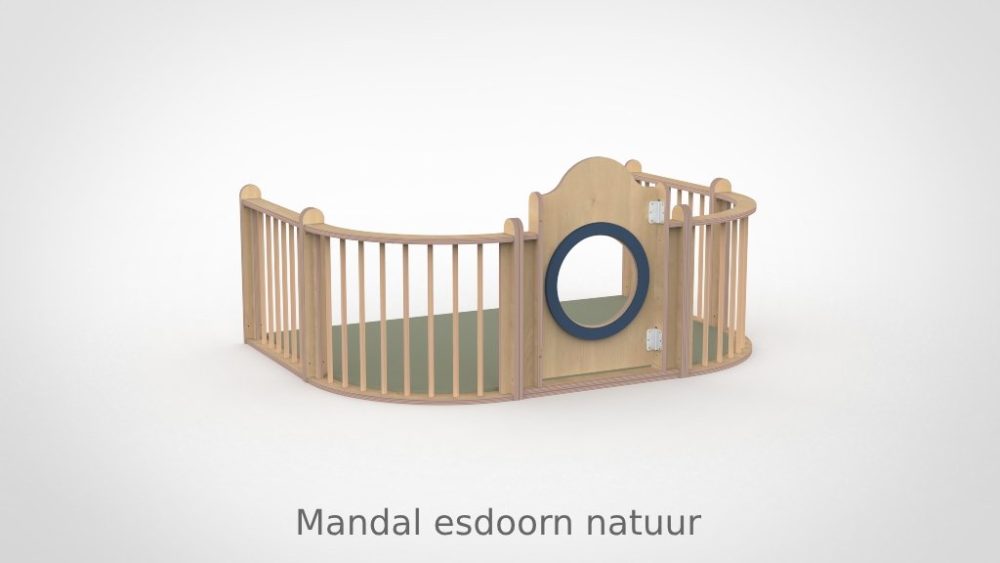 De panelen zijn opgebouwd uit 15 mm berken multiplex met aan beide kanten een slijtvast HPL in wit of in een van de 8 beschikbare houtdecors. De decoratieve ringen in de panelen zijn verkrijgbaar in meer dan 30 kleuren, gespoten in onze eigen spuiterij — zo stemt u de grondbox perfect af op de uitstraling van uw groepsruimte. De ronde kijkgaten zijn voorzien van transparant plexiglas, veilig en kindvriendelijk. Alle panelen zijn ontworpen met het voorkomen van beknelling van hoofd en vingers als uitgangspunt. De ondergrond mag gewoon de vloer zijn: baby’s kunnen zich hier het beste tegen afzetten om te oefenen in allerlei posities. Optioneel levert Castilo een mat op maat, vervaardigd in ons eigen stoffeeratelier uit hoogwaardig kunstleder — ademend, waterdicht en slijtvast — in talloze kleuren en materialen.