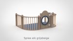 In de grondbox kunnen oudere baby’s — te groot voor de gewone box maar nog niet klaar om vrij op de groep te spelen — zich in alle vrijheid bewegen en ontdekken. Vanuit liggen rollen ze om, gaan tijgeren en leren kruipen. Dit zelfstandig bewegen heeft een positieve invloed op het zelfvertrouwen en zelfbeeld van het kind. Tegelijk creëert de grondbox rust op de groep: baby’s worden niet meer gehinderd door grotere kinderen en andersom. Het ergonomische deurtje opent door het op te tillen en zo uit de vergrendeling te halen — u hoeft niet te bukken om het deurtje te openen of te vergrendelen. De lage drempel zorgt ervoor dat u kinderen eenvoudig in en uit de box kunt tillen.