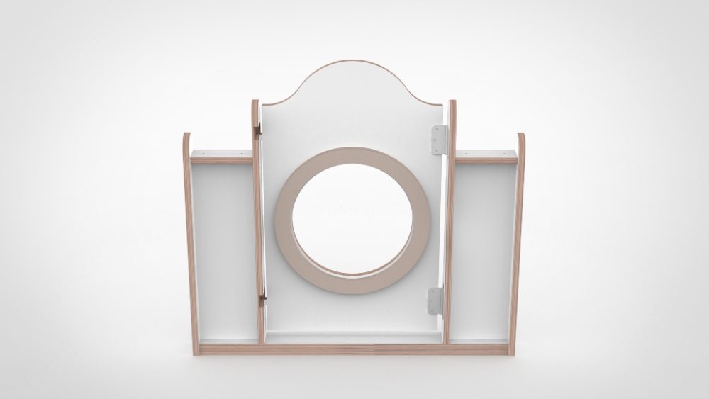 15 mm berken multiplex met dubbelzijdig HPL in wit of een van de 8 houtdecors. Ringen in meer dan 30 kleuren uit onze eigen spuiterij. Anti-beknellingsontwerp en gerecycled, krasvast plexiglas in de kijkopening.