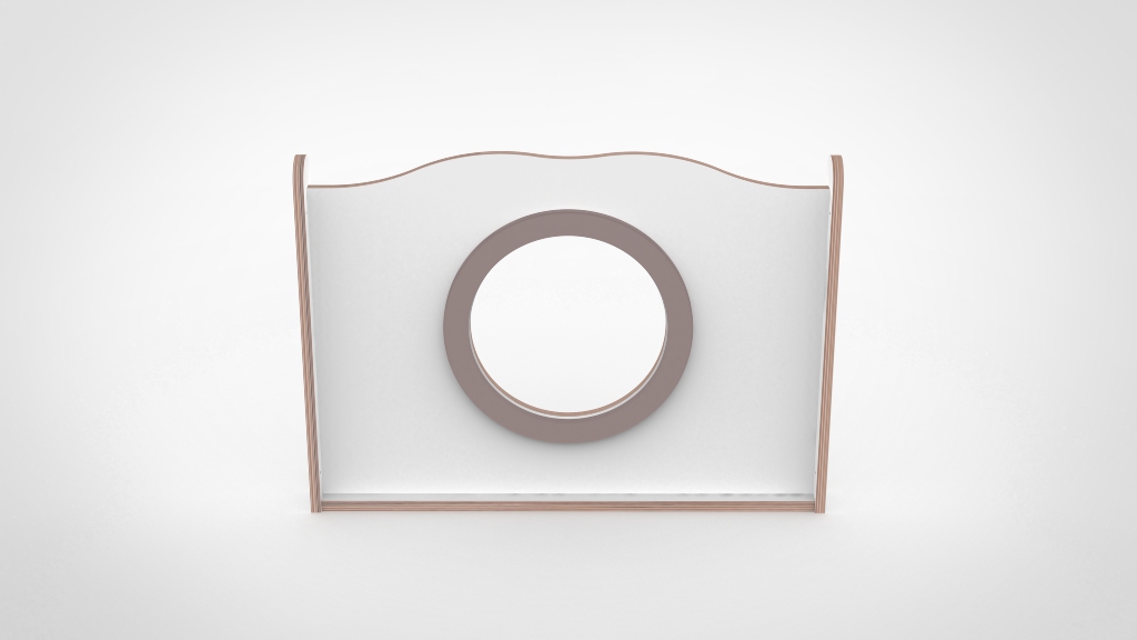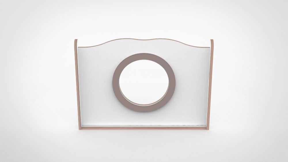 Breed Wave paneel van 85 cm met de kenmerkende grote ronde kijkopening. Gerecycled plexiglas zorgt voor transparantie en veiligheid. Optioneel met decoratieve silhouette.