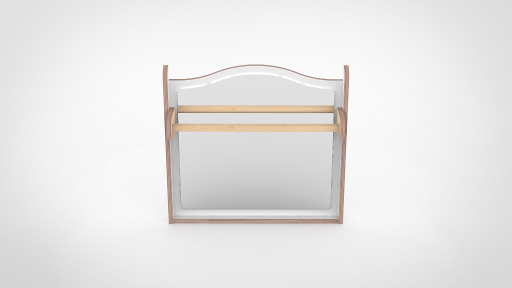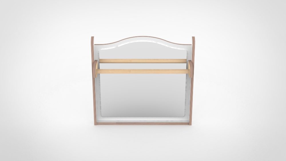 15 mm berken multiplex met dubbelzijdig HPL. Massief beukenhouten stang, glad afgewerkt. Kindveilige spiegel. Anti-beknellingsontwerp. 8 houtdecors en wit.