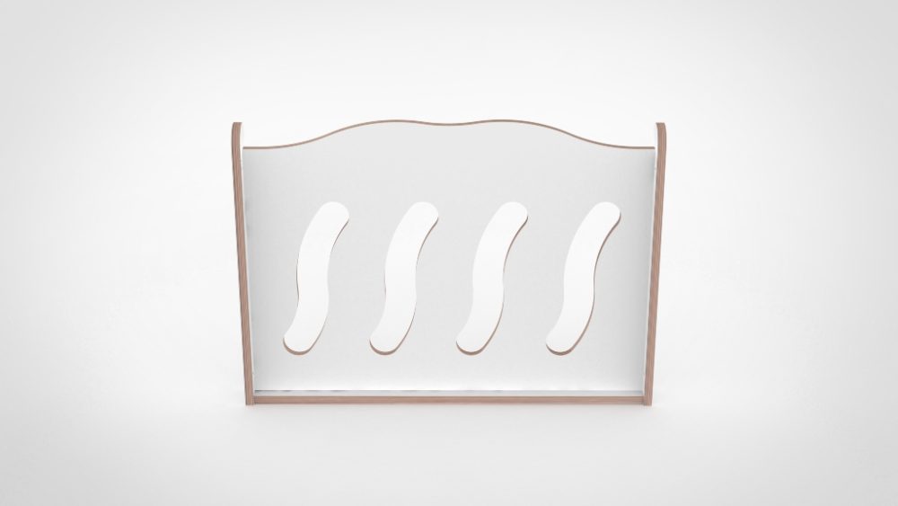 Breed Wave paneel van 85 cm met verticale sleuven. Laat meer licht en geluid door dan de 65 cm variant en geeft de grondbox een open, luchtig karakter.