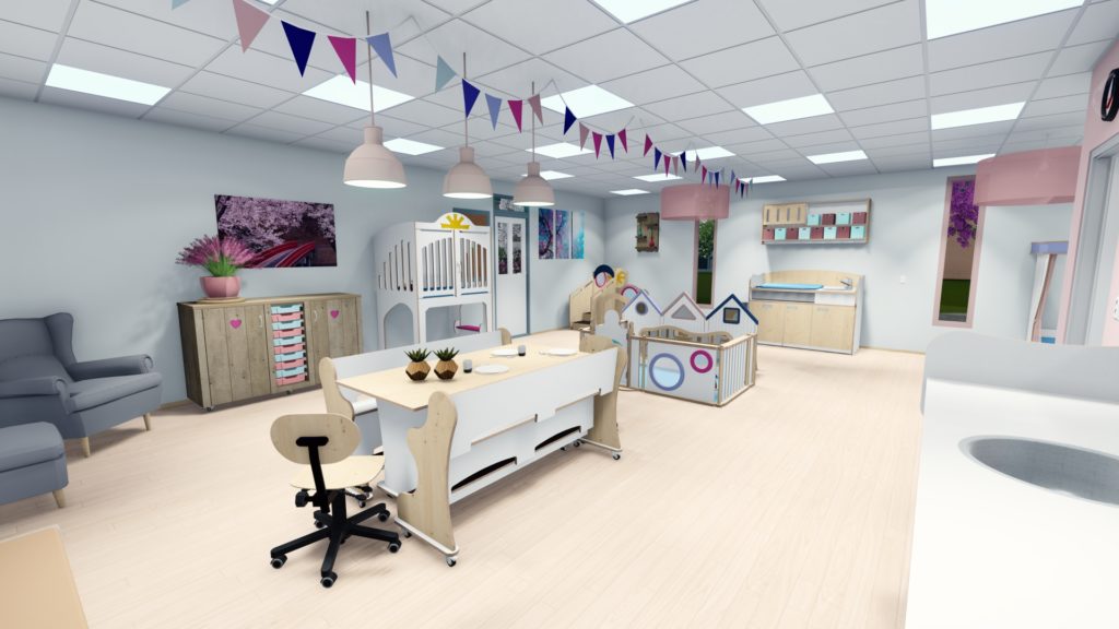 Deze ruimte is ingericht voor een MBO school die praktijkles geven voor in de kinderopvang. Hoe leuk is het dat…